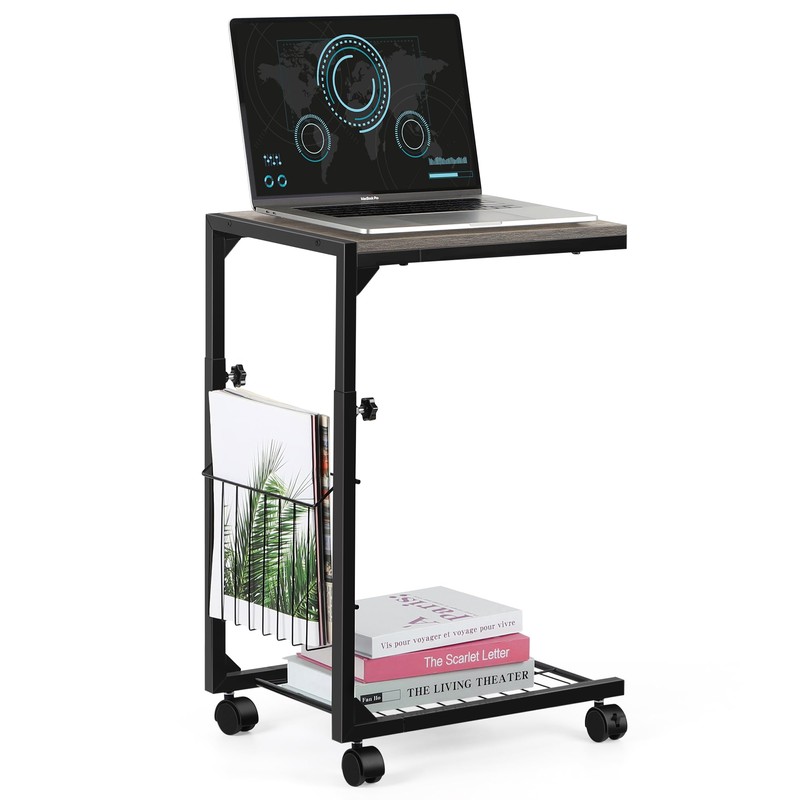 - Sturdy And Durable - Sturdy "C" shape construction made of sturdy metal tubing and thickened MDF wood panels gives it high load capacity and stability; C table adjustable height with 4 wheels (2 lockable) to move the table top as you wish, and the frame has an open cantilever design that can hold up to 60 lbs