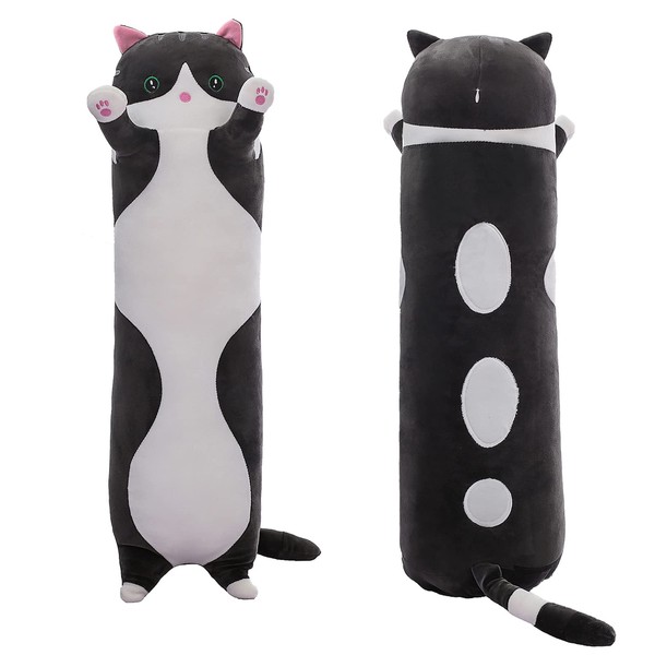 SHINUOER Long Cat Plush Pillow Cat Body Pillow,Black Cat Stuffed Animals Soft Plushies Kawaii Stuffed Kitten Plush Toy for Kids Girlfriend(Black, 51.1Inch)