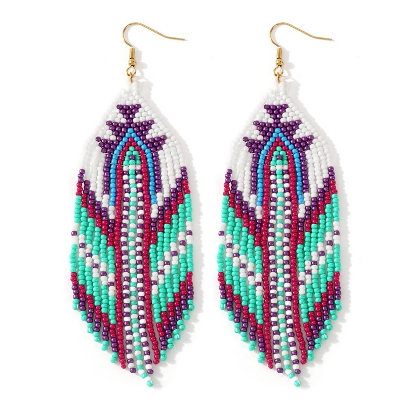 - Stand out from the crowd with these unique seed bead earrings, available in various colors including rainbow.