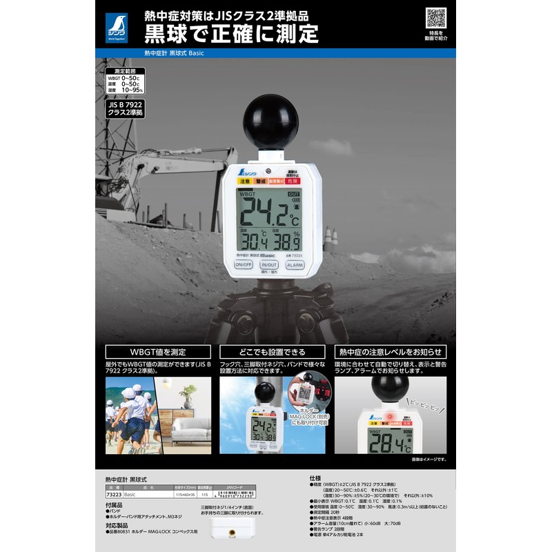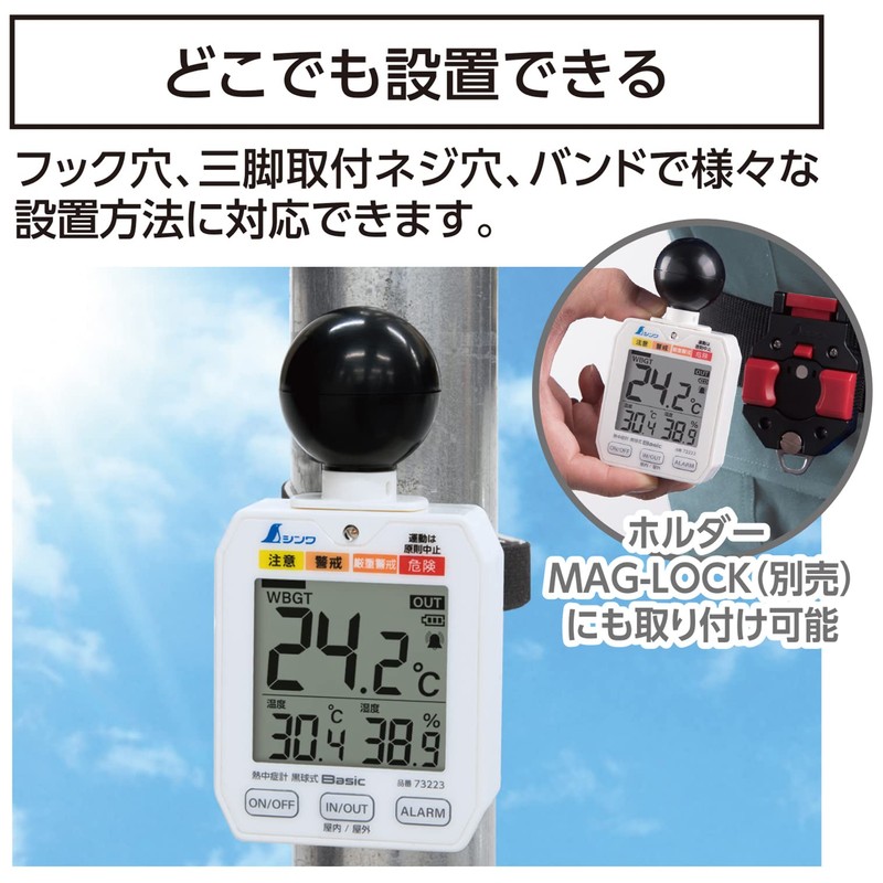 - You can also measure the WBGT value outdoors. (JIS B7922 Class 2 Compliant)