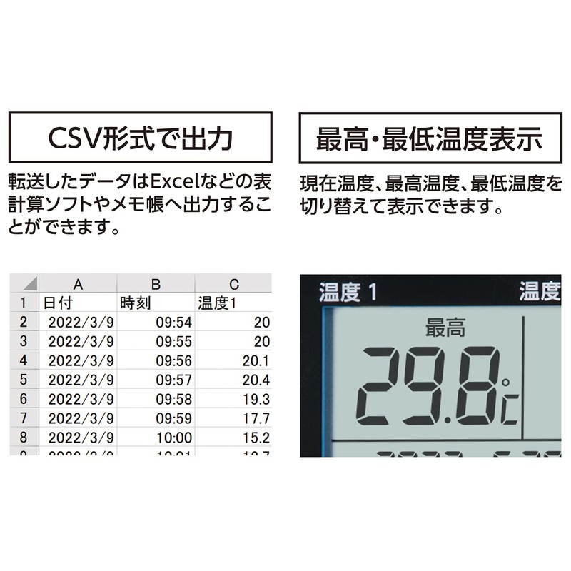 - It can record 63,000 data from 2 points simultaneously and check the log data on your computer