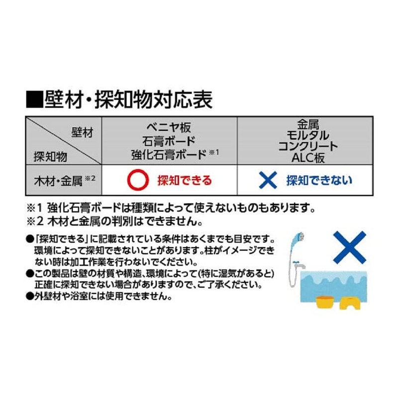 - For finding wall subsurface frames and obstaclesUseful when installing curtain rails, shelves, picture frames, handrails, earthquake-proof hardware, etc. (tested wall thickness: approx. 0.75 inches (19 mm))
