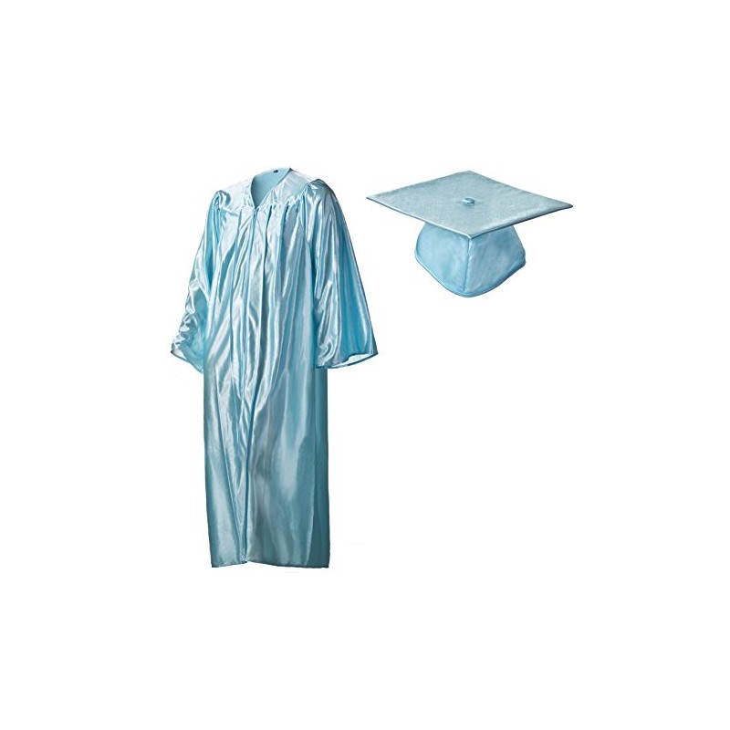 Shiny Light Blue Graduation Cap and Gown Set in Multiple Sizes (48 Plus (Over 185lbs))
