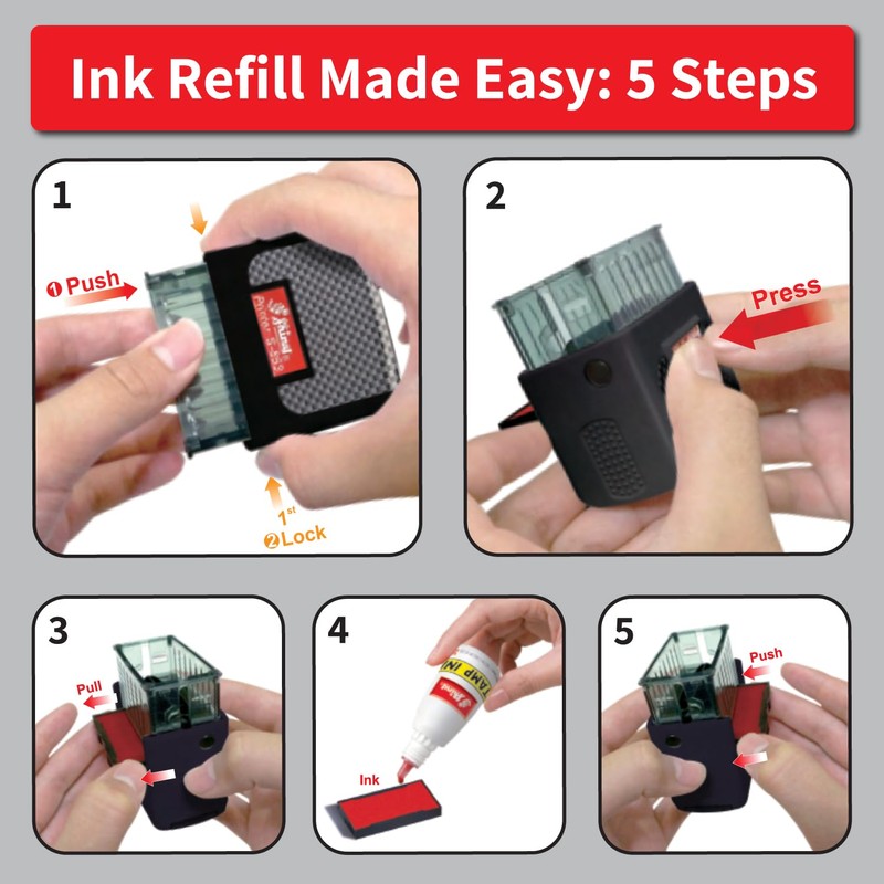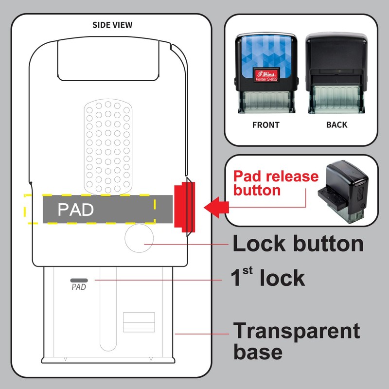 - Easy Pad Release: The push-button pad release ensures re-inking your stamper is a breeze; simply apply the side lock buttons and push the red button to release the stamp pad
