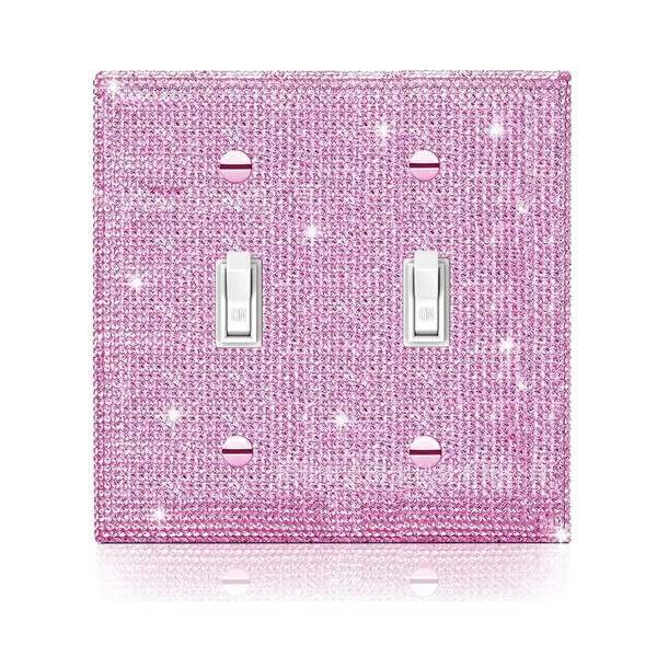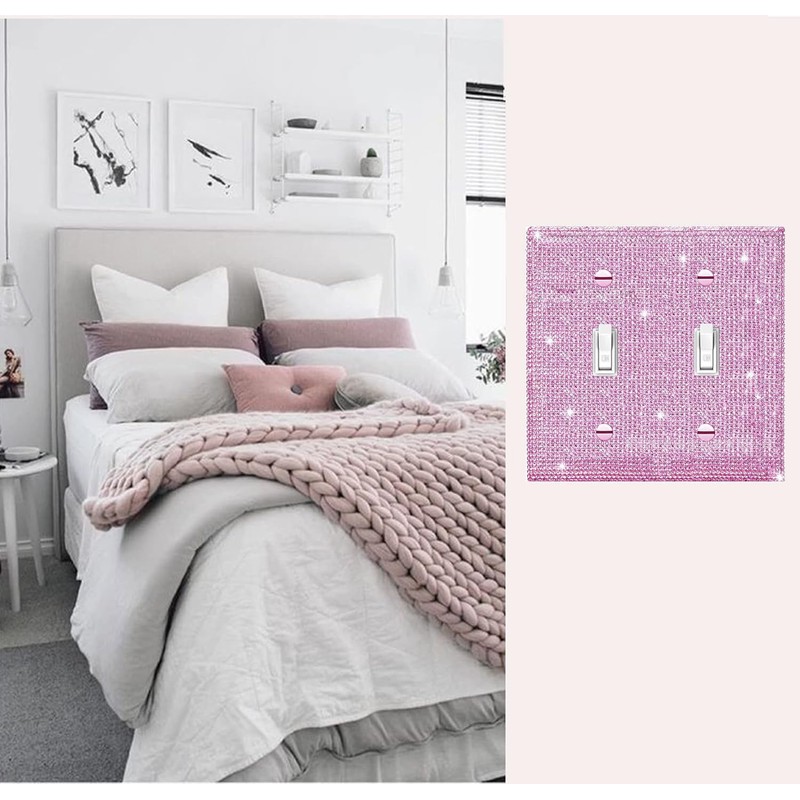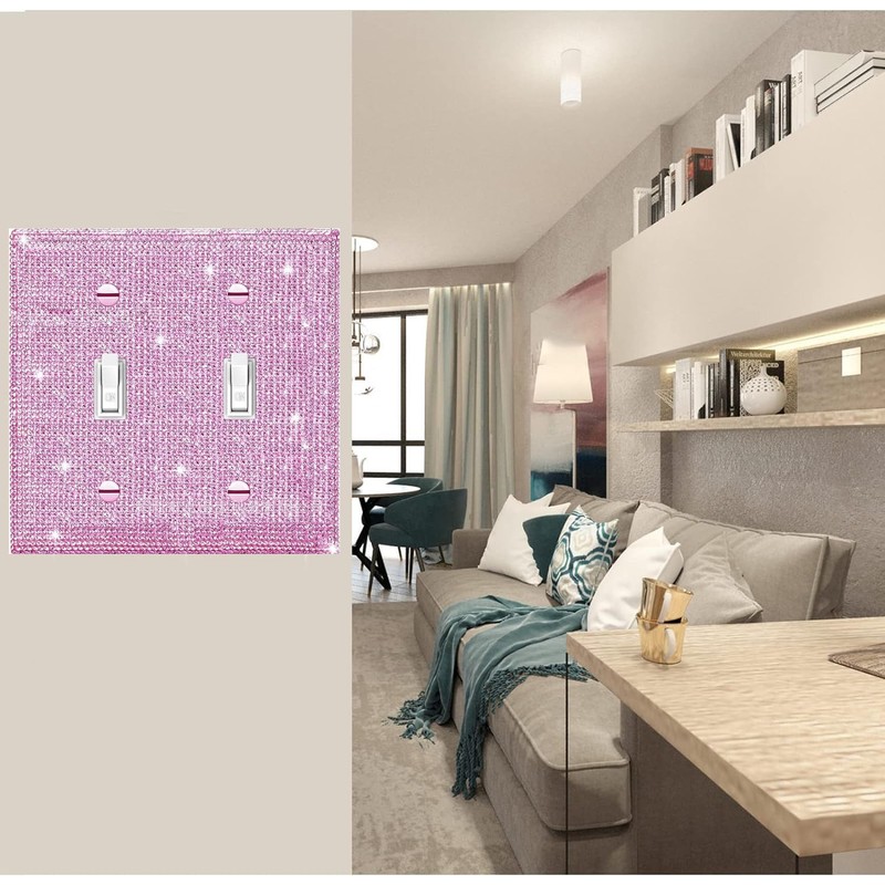 Shiny Silver Pink Bling Outlet Covers Wall Plate Double Toggle Light Switch Cover for Bedroom Accessories Home Decorative