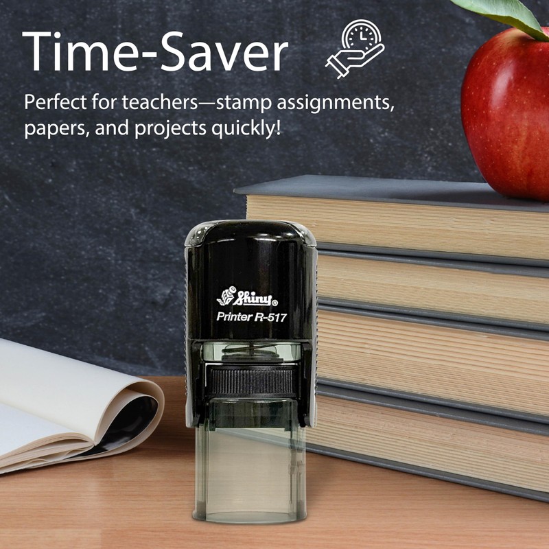 - Teacher Stamps: Shiny R-517 teacher stamps feature a clear base and slip resistant rubber feet making them ideal for many applications, including office, retail and more