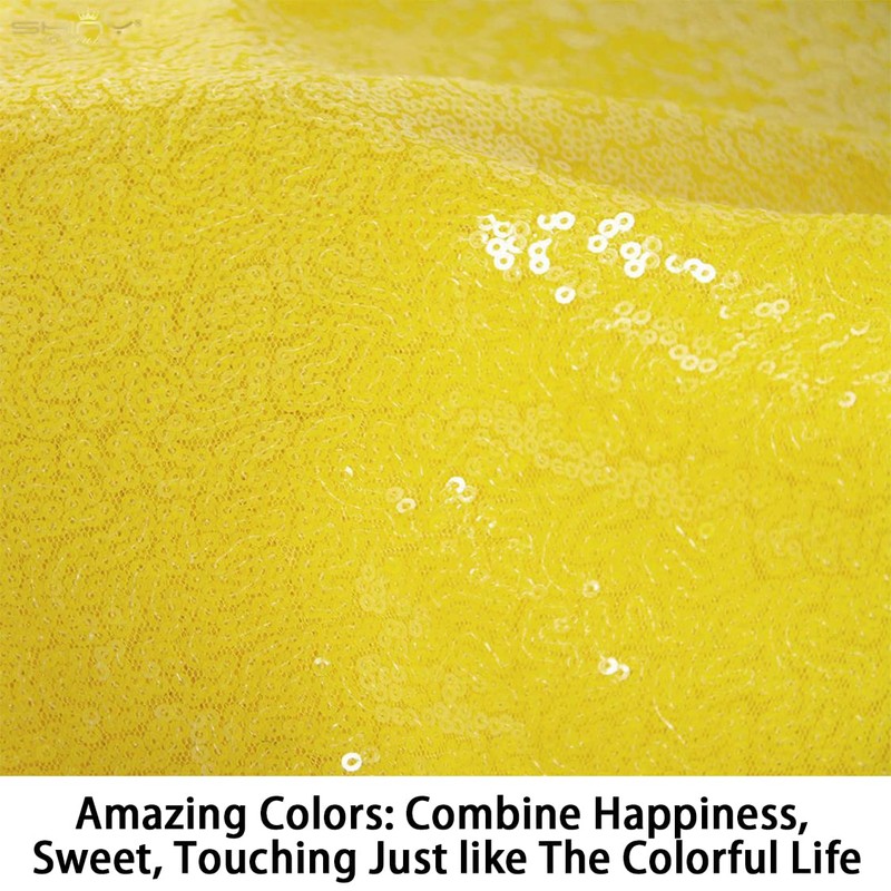 ShinyBeauty Yellow Sequin Fabric by The Yard 4 Yards Christmas Fabric 4FT Wide Fabric by The Yard Lining Fabric for Clothing Material 2 Way Stretchy Photo Booth Background Fabric Tulle Fabric Shimmer