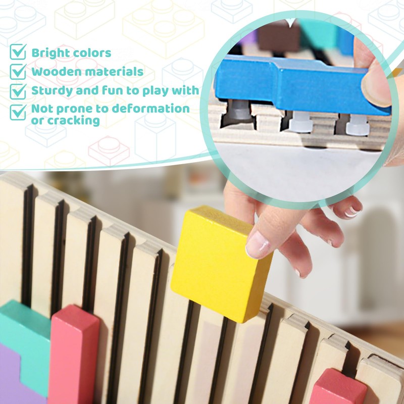 - HIGH QUALITY WOOD This wooden Tetris Montessori toy is made of wood, has a hard texture, strong and sturdy, not easy to crack or deform, which feels comfortable in your hand.