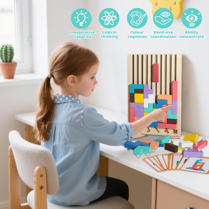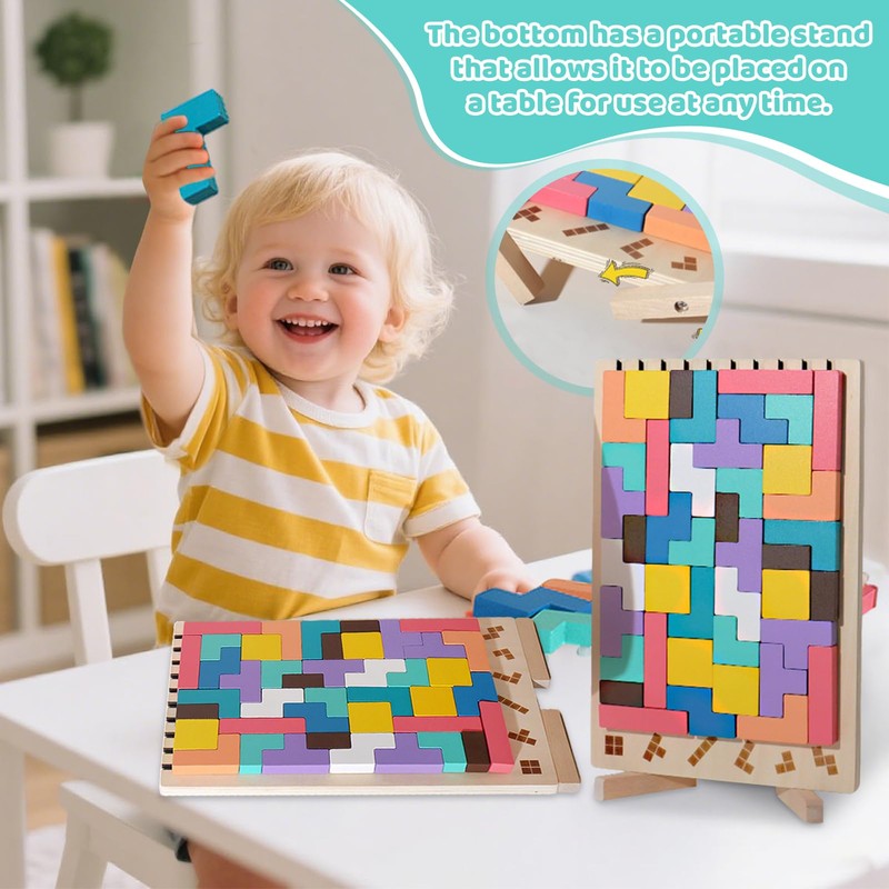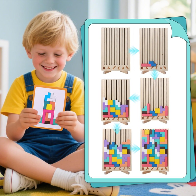 - Tetris wooden game: this wooden Tetris toy with 42 extra thick geometric wooden tetris and 1 puzzle board with 10 double-sided patterned playing cards offer the same realistic playing experience as the classic game that increases the fun and challenge of puzzling for your child.