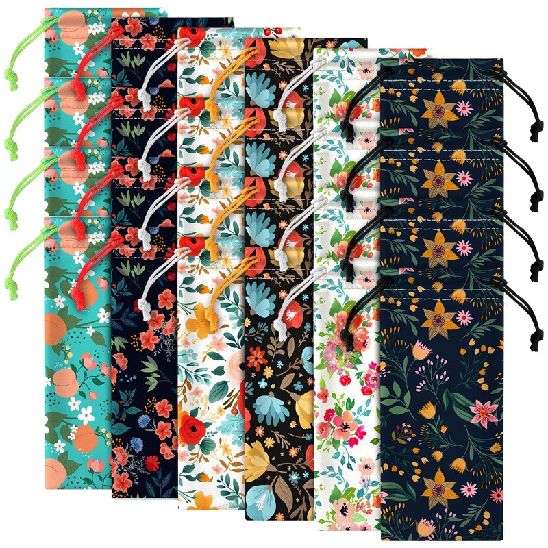 Shinylin 24 Pcs Sunglass Pouch Drawstring Microfiber Pouch Multicolor Soft Sunglasses Case Sunglasses Bag Eyeglass Pouch (Vivid Colors,Flower)
