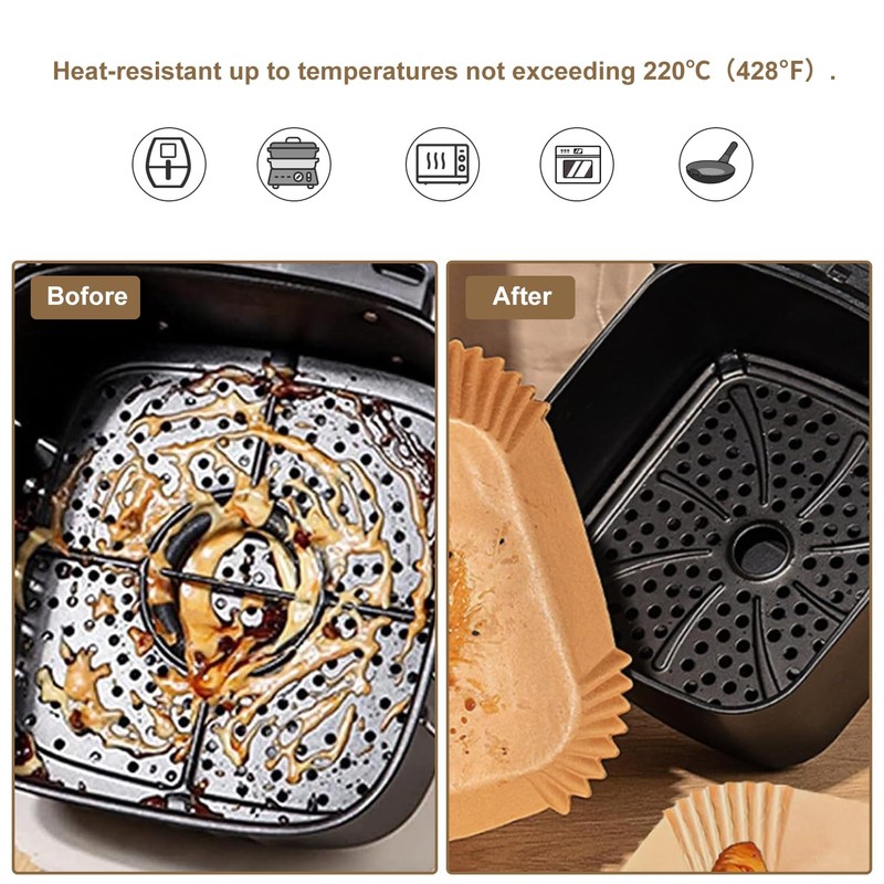 - A must-have air fryer accessories for lazy gastronomes. Disposable air fryer liners have wide applications such as microwave, oven, skillet, steamer or cooker. Great for baking, frying, roasting, camping, and BBQ serving food. Just throw away the parchment paper liners after use!