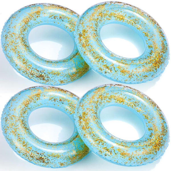 ShinyRelief 4 Pcs Inflatable Glitter Pool Float 30'' Macaron Swim Tube with Gold Confetti Swim Inner Tube for Adults Pool Floats Rings for Summer Beach Swimming Pool Bachelorette Party(Blue)
