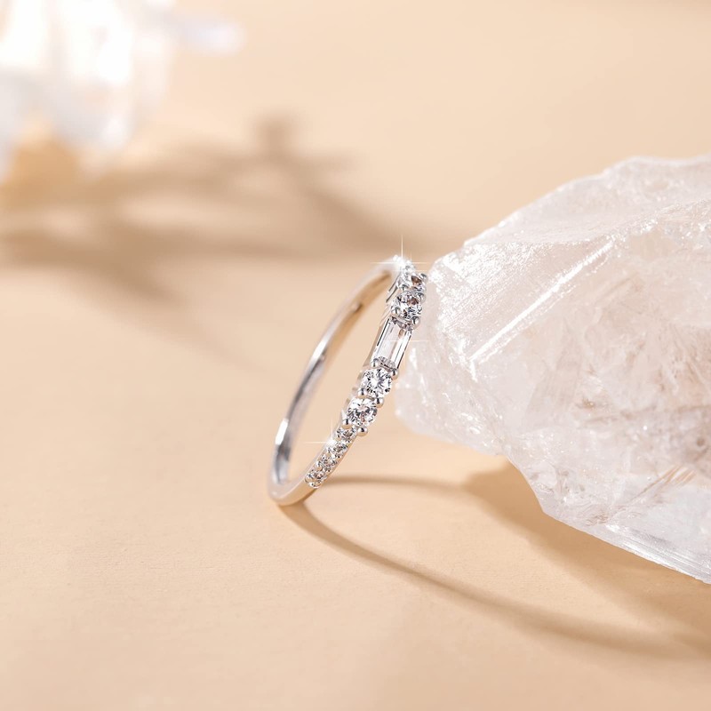 - ♥UNIQUE DESIGN♥ This eternity band features a half cz stone, brings you both elegance and dainty. The silver/gold stacking wedding band can be worn alone or stacked with other engagement rings