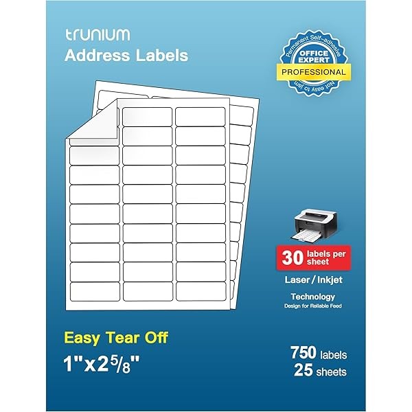 Shipping Address Labels, 1" x 2-5/8" Address Labels for Laser & Inkjet Printers, Mailing Labels for 5160, 5260, 8160, Strong Adhesive for FBA Label, Easy to Peel (25 Sheets, 750 Labels)