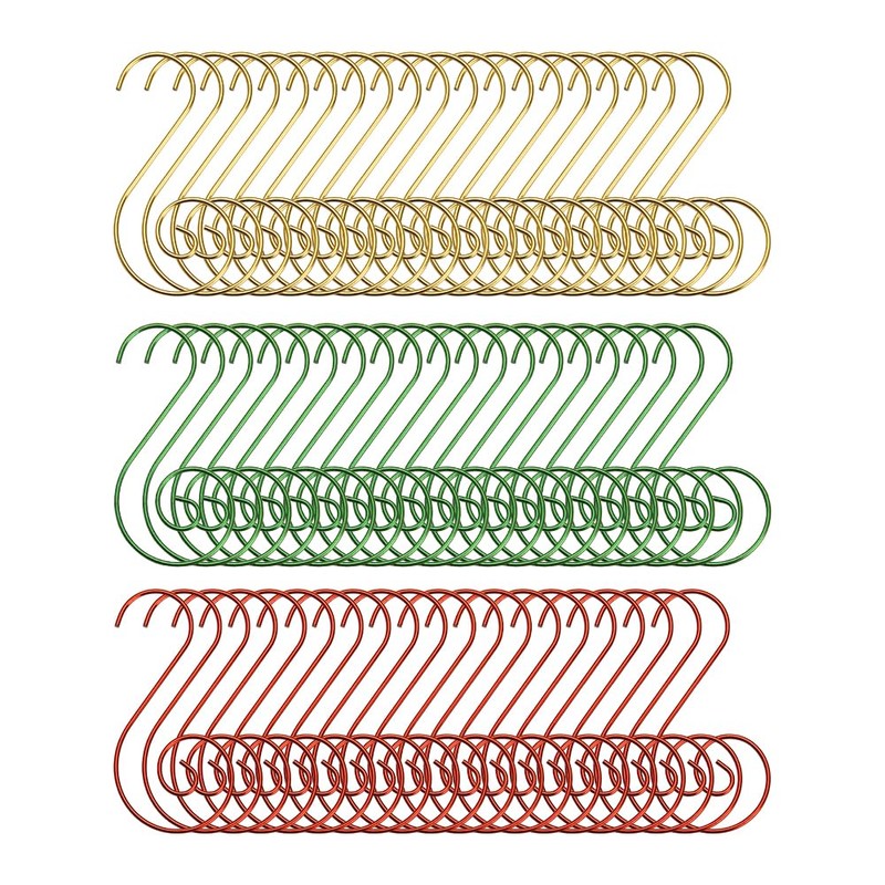 • With a total of 60 hooks—20 in each festive colour—this Christmas hanger set ensures you have plenty of hooks for all your holiday decorating needs, whether you're adorning a large tree or creating a beautiful garland display, our s shaped hangers helps you add a cheerful touch to any space and elevating your holiday spirit