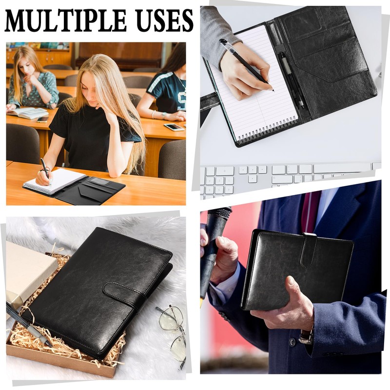 - Unique Design: This business portfolio binder is designed with a magnetic buckle, the convenient magnetic buckle allows you to pick it up at any time after use without worrying about the contents of the notes. In addition, the inside of the leather notebook cover is also designed with 5 inner pockets 5 and 2 elastic pen clips, so you can place ID cards and pens.