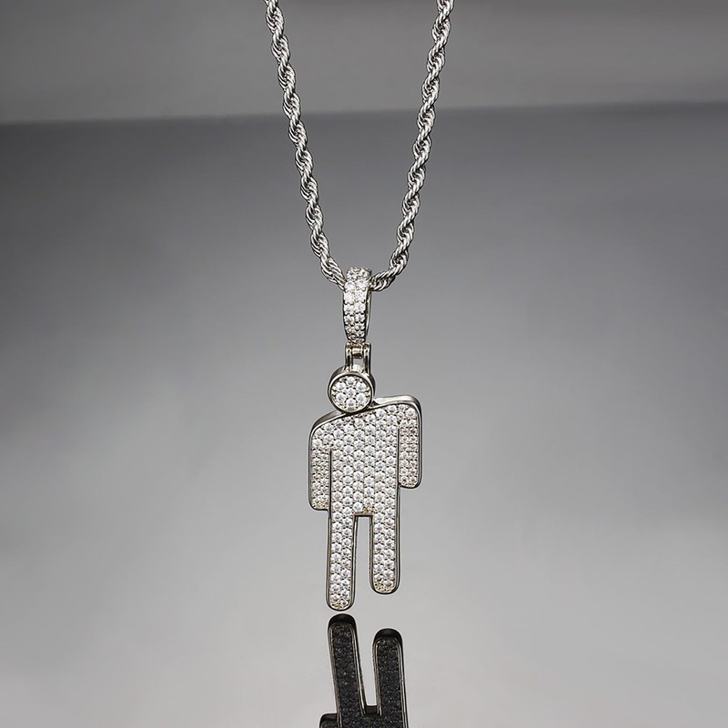 Shirene Hip-Hop-Halskette,Hip-Hop-Bad-Guy-Villain-Anhänger,Modische Einfache Halskette,Edelstahl-Kette mit Zirkonia-Schiefkopf,Trendiger Rap-Schmuck für Damen und Herren (Silber)