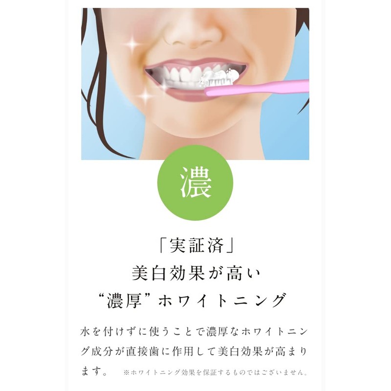 - Newly inspired toothpaste that cleans without water. The foam is very strong so you can polish it without watering your toothbrush. By polishing it without applying water, the thickest ingredients will work