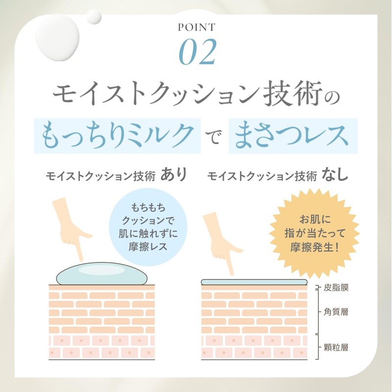 - ✔Point 2: The moist cushion technology makes it perfect for the milk. The moisturizing cleansing milk has a rich feel with a dense yet firm elasticity, so you can turn off your makeup without any worries. The secret to this squishy feel is the original moist cushion technology that has 31 types of beauty ingredients wrapped in a mesh