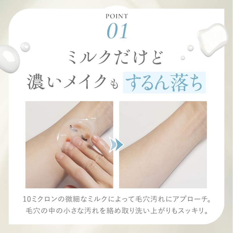 - ✔ Point 1: Even though it is milk, it will also shut off the dark makeup well. "Moist Cleansing Milk" has been used with several types of oils to blend with makeup and smoothly. Not only does it remove foundation, but it also removes point makeup such as eyeliner and mascara
