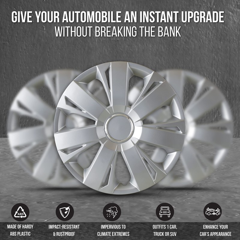 - CUSTOMIZE YOUR CAR with luxurious looking hubcaps wheel covers for 16-inch car rims. This set of 4 hub caps in 1-tone silver gives your automobile an instant upgrade without breaking the bank.