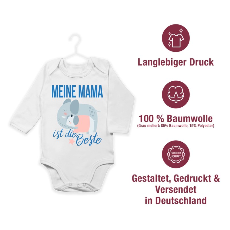 Shirtracer - Baby Bodysuit Long Sleeve Girl Boy - Meine Mama ist die Beste Elefanten, 1 White
