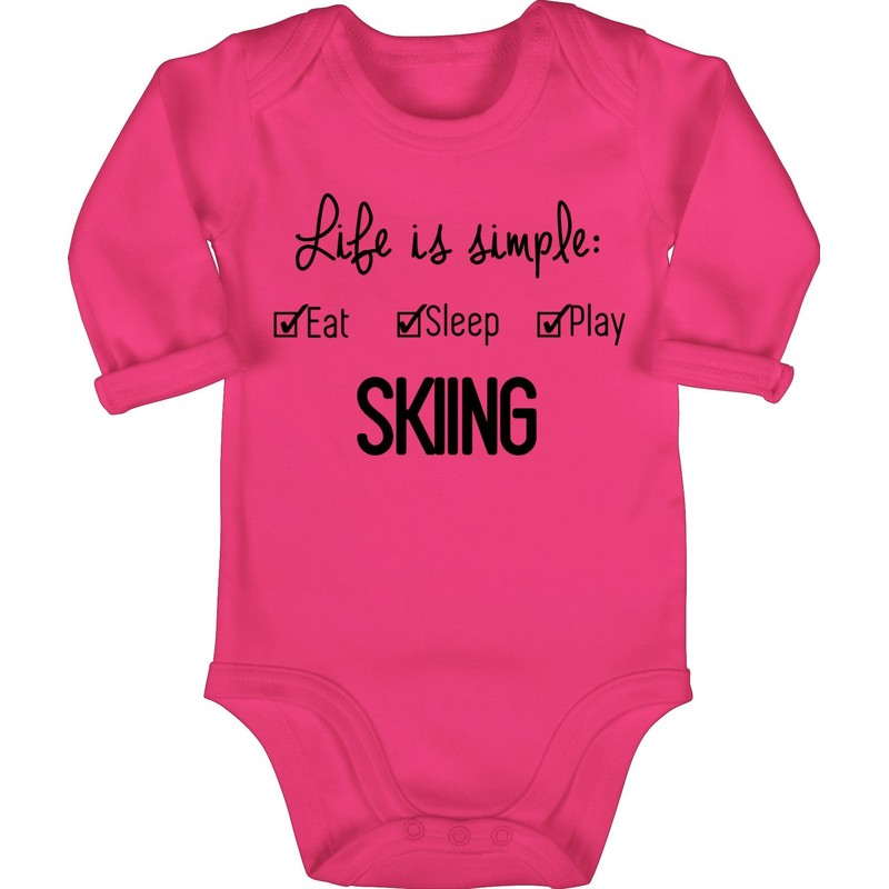 Shirtracer - Baby Bodysuit Long Sleeve Girl Boy - Sport & Exercise - Life is Simple Skiing, 2 Fuchsia, 6-12 months
