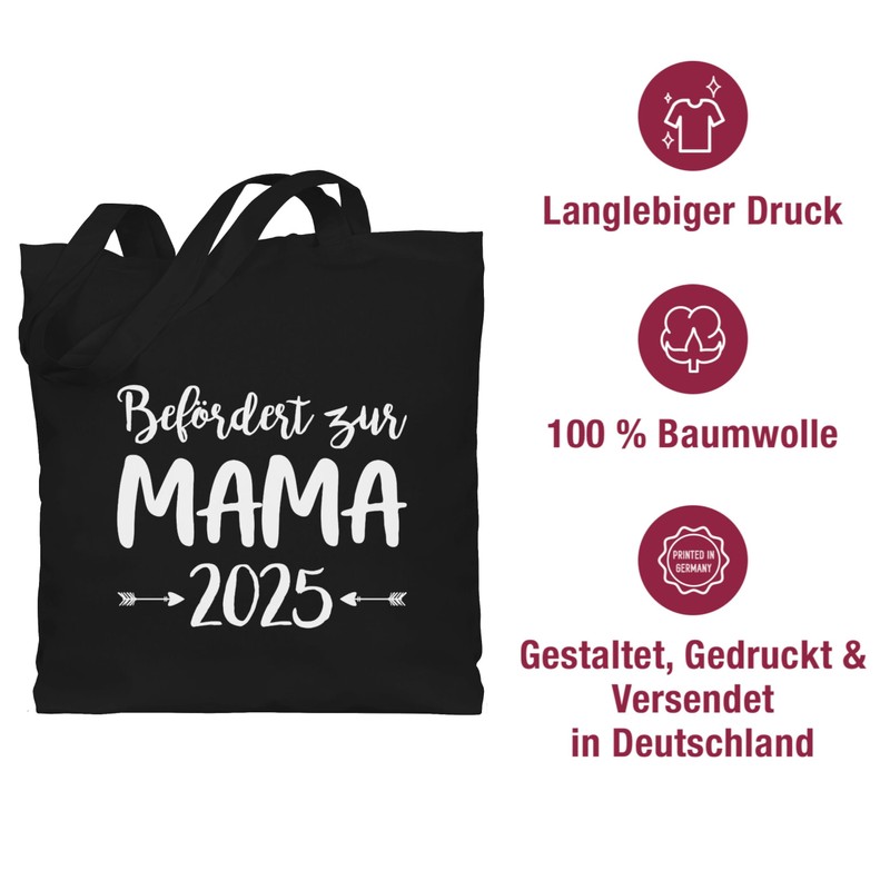 Shirtracer - Cotton Bag - Bags - Promoted to Mum 2025 I Expectant Mother Gift I Birth, 1 black, Unit size