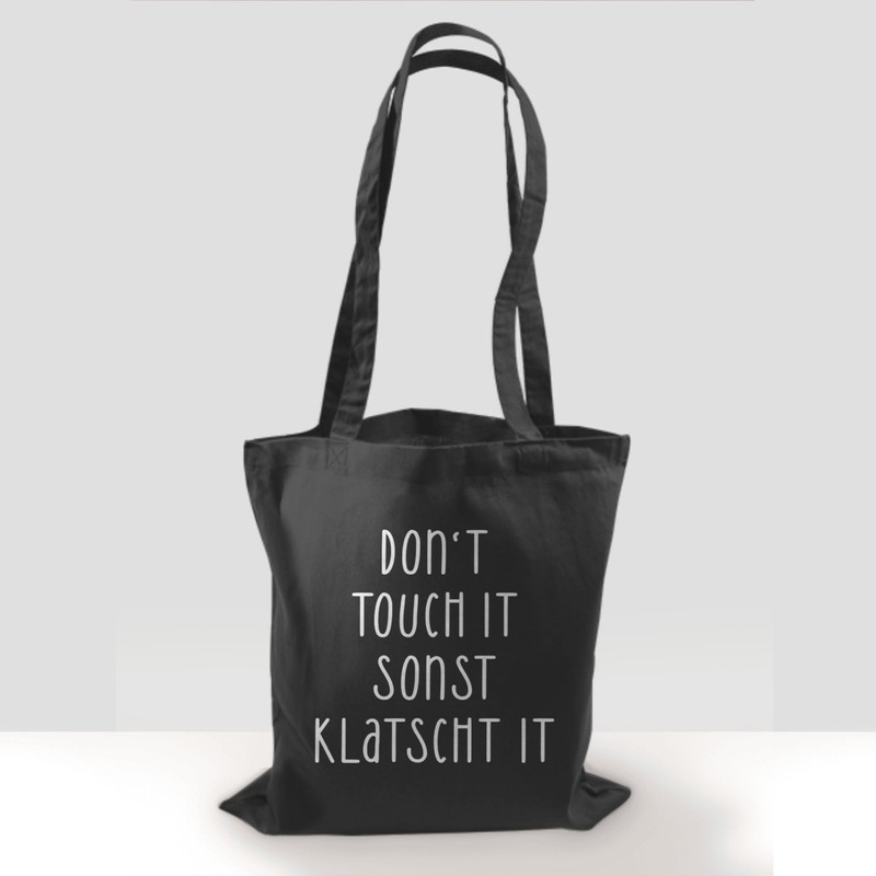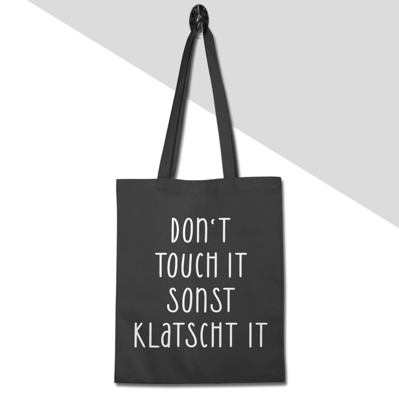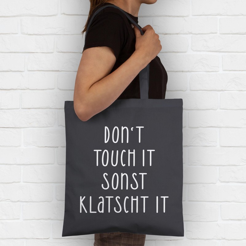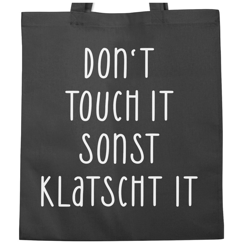Shirtracer - Cotton Bag - Statement Bags - Dont Touch it sonst klatscht it - Funny Saying Cheeky Funny Gift Workplace, 2 Dark Grey