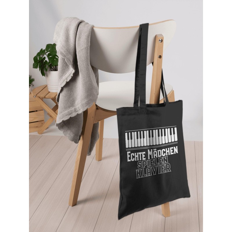 Shirtracer - Cotton Bag - Statement Sayings Children - Real Girls Play Piano, 1 black, Unit size