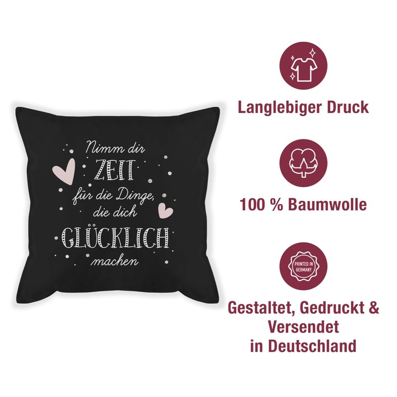 Shirtracer Cushion 50 x 50 cm - Statement with Sayings - Take Time for the Things That Make You Happy - White - 50 x 50 cm - Black - Cushion Cover Saying Sayings Things Men's Cushion and Filling