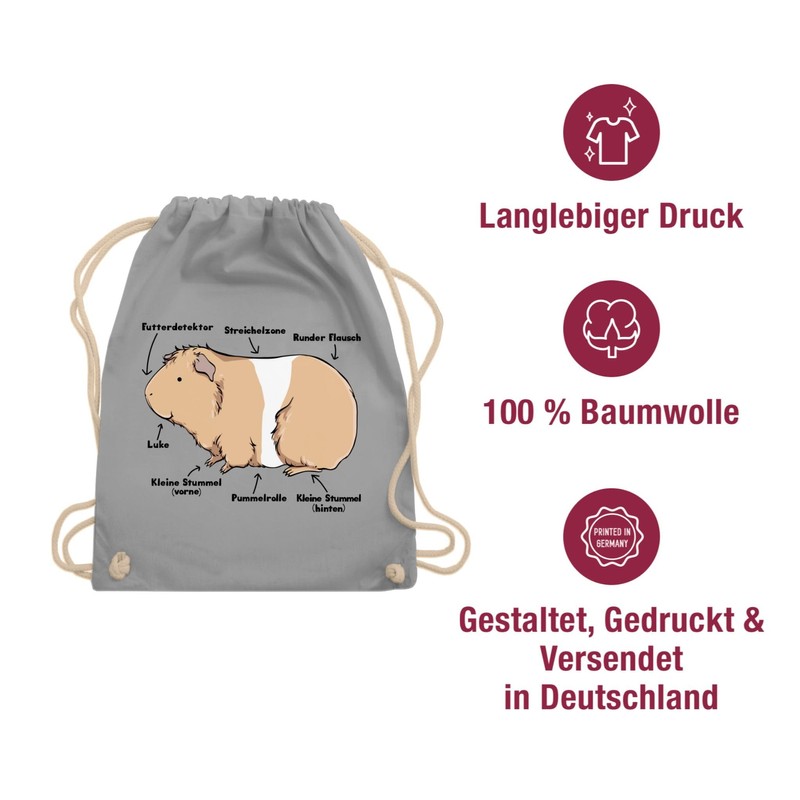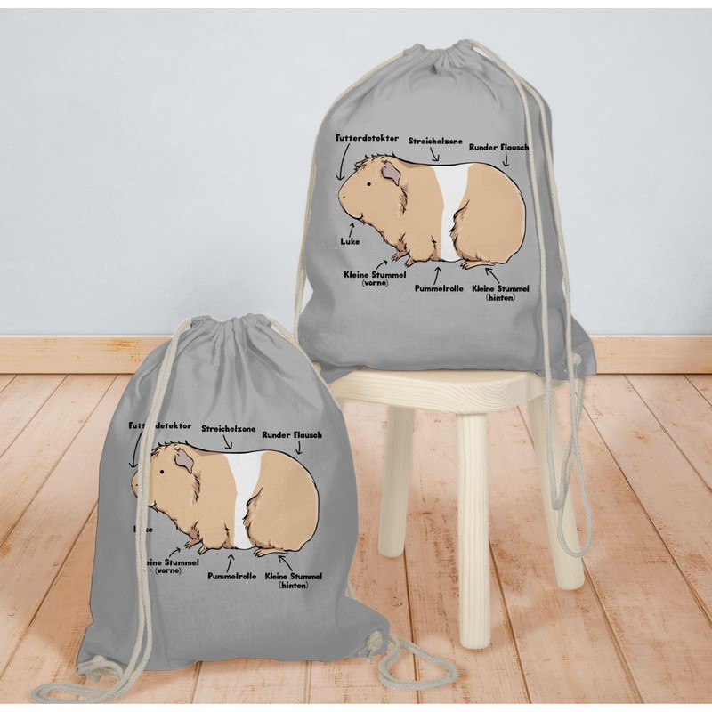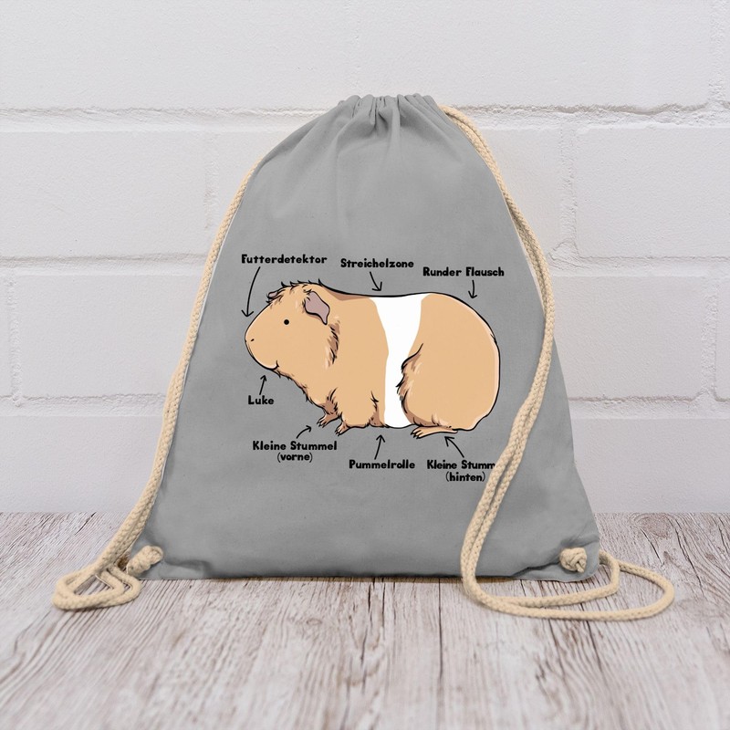 Shirtracer - Gym Bag Backpack - Animals Guinea Pig Rabbit & Co. - Guinea Pig Anatomy, 01 Light Grey