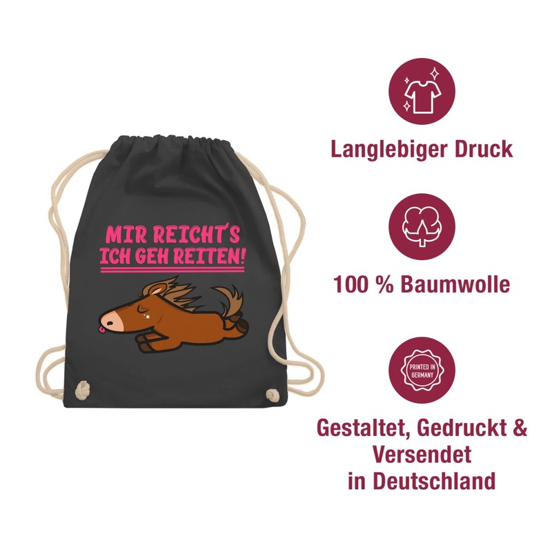 - Equestrian design: the happiness of this earth lies on the back of the horses! Do you spend most of your time in the riding stable with your horses? Or do you know someone who is an absolute horse friend? The cute motif convinces everyone who is looking for "mir reicht ich geh reiten beutel" and are looking for matching equestrian gym bag.
