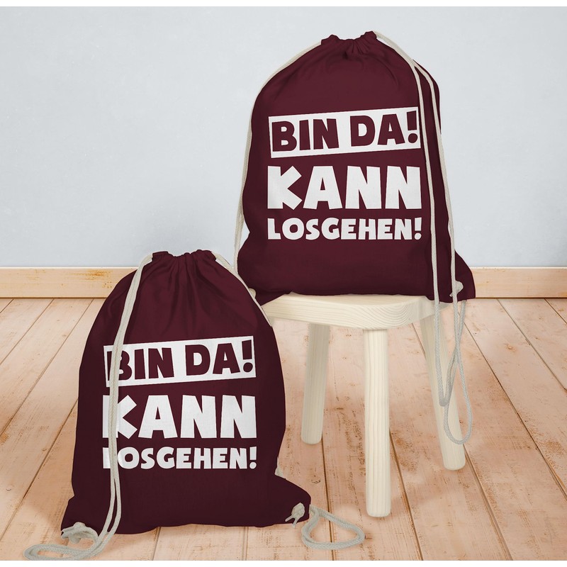 Shirtracer - Gym Bag Backpack - Sayings Statement with Saying - Bin da kann losgehen, 06 Bordeaux red