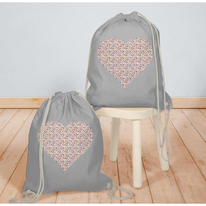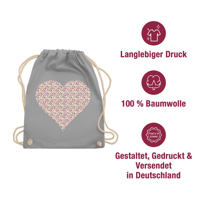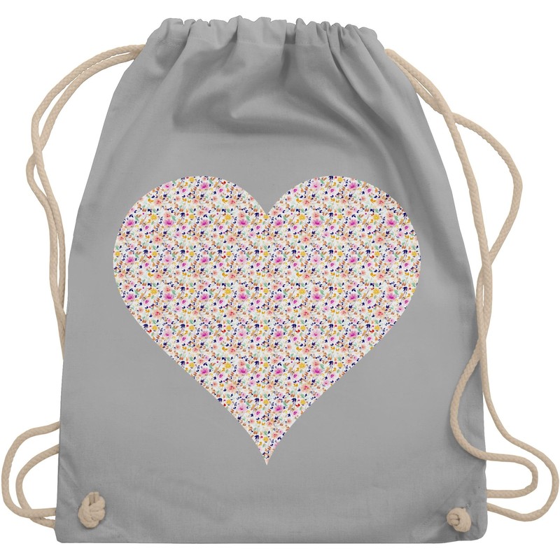 Shirtracer - Gym Bag Backpack - Vintage Retro - Heart Flowers Colourful, 1 Light Grey