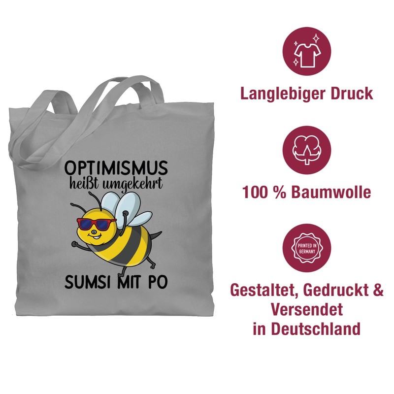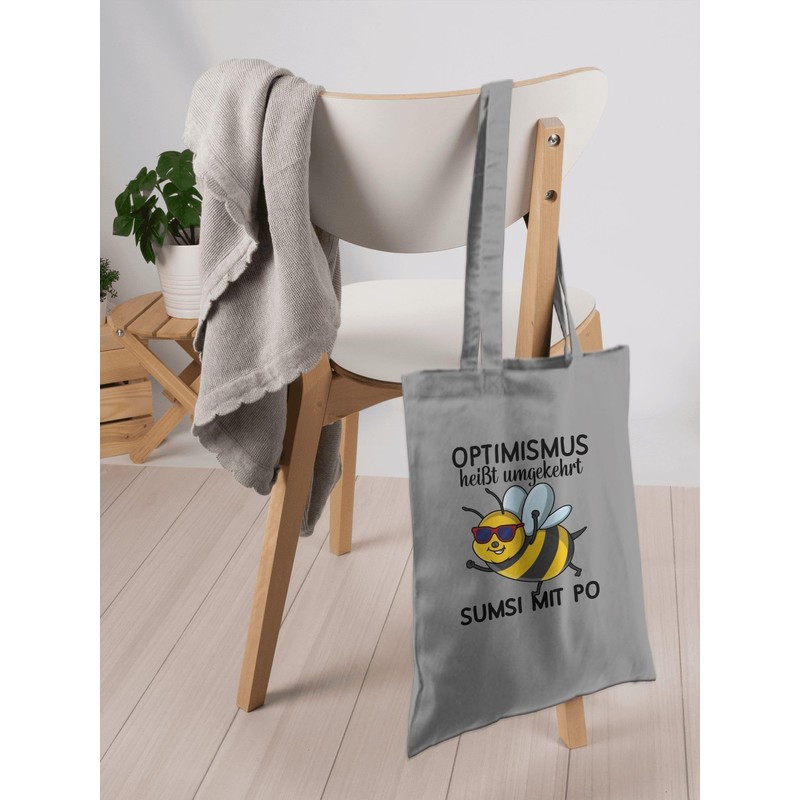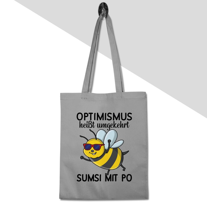 Shirtracer - Statement with saying - Optimism means Reverse, Sumsi mit Po - Black - Cotton Cloth Bag Jute Bag Long Handle, 1 Light Grey, Einheitsgröße