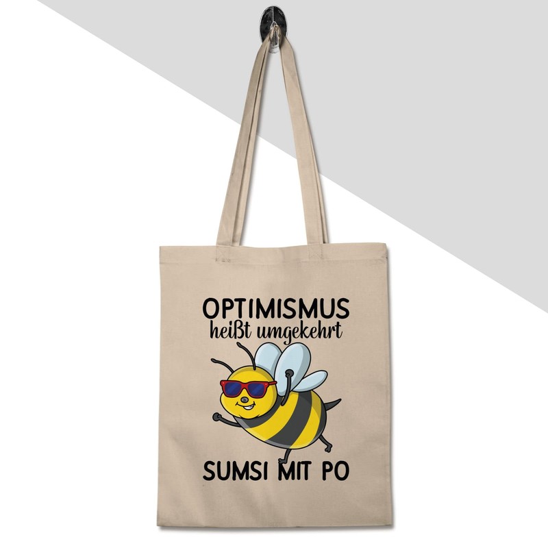 Shirtracer - Statement with saying - Optimism means Reverse, Sumsi mit Po - Black - Cotton Cloth Bag Jute Bag Long Handle, 2 natural white, Einheitsgröße