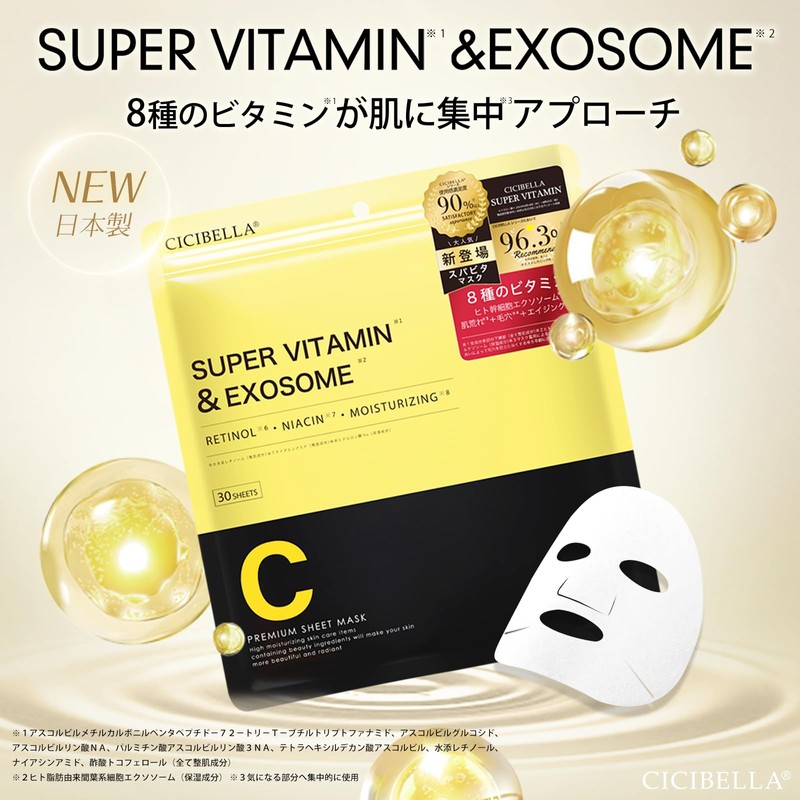 Shishibera Face Pack, 30 Pieces, Large Capacity, Sheet Mask, Exosome, Exosome, High Penetration, Super Thick Moisturizing, Daily Face Mask, Super VITAMIN x EXOSOME