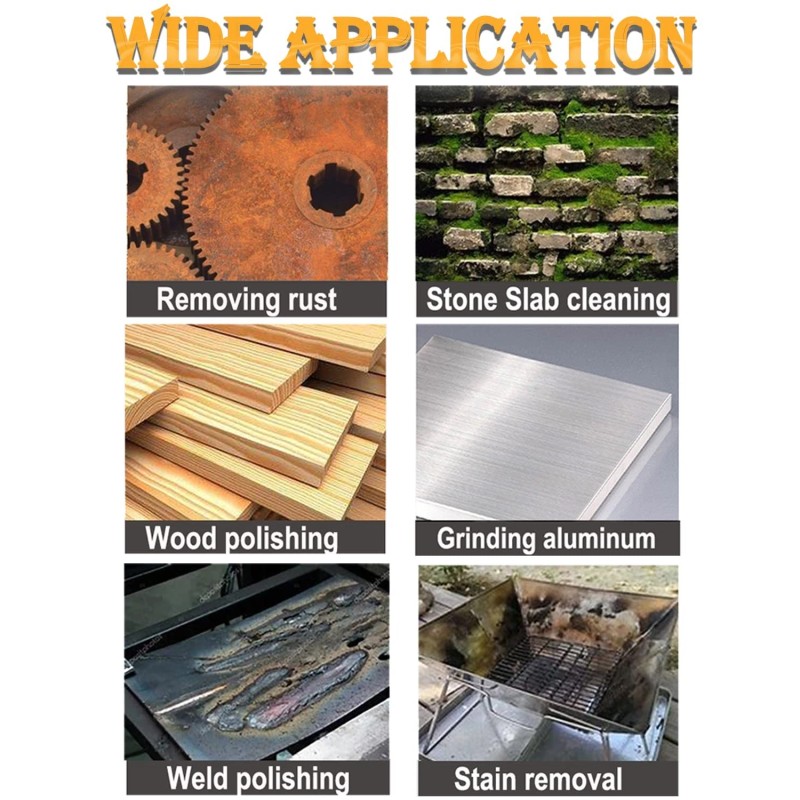 Application: Takes off paint and rust quickly, especially suitable for polishing stainless steel, aluminum, iron and other metal structure products.