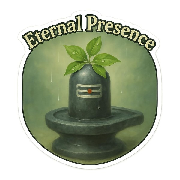 Shivalinga with Bilva Leaves and Water Drops Serene Photorealistic Painting Sticker (2.75" x 3")