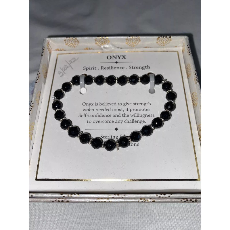 Shivam BLACK ÓNYX GENUINE GEMSTONE BRACELET SHIVAM .925 STERLING SILVER & NIB