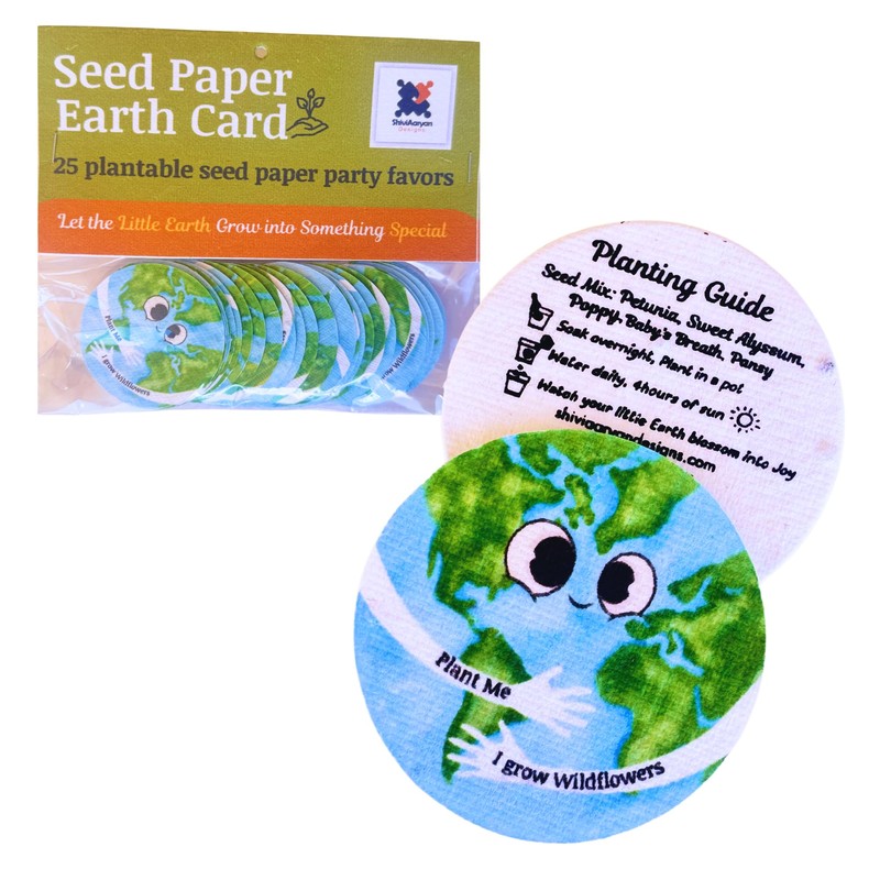 ShiviAaryan Designs 25 Plantable Seed Paper Earth Day Cards with Wildflower Seeds, Kids Craft Activity, Educational Garden Party Favor, school crafts