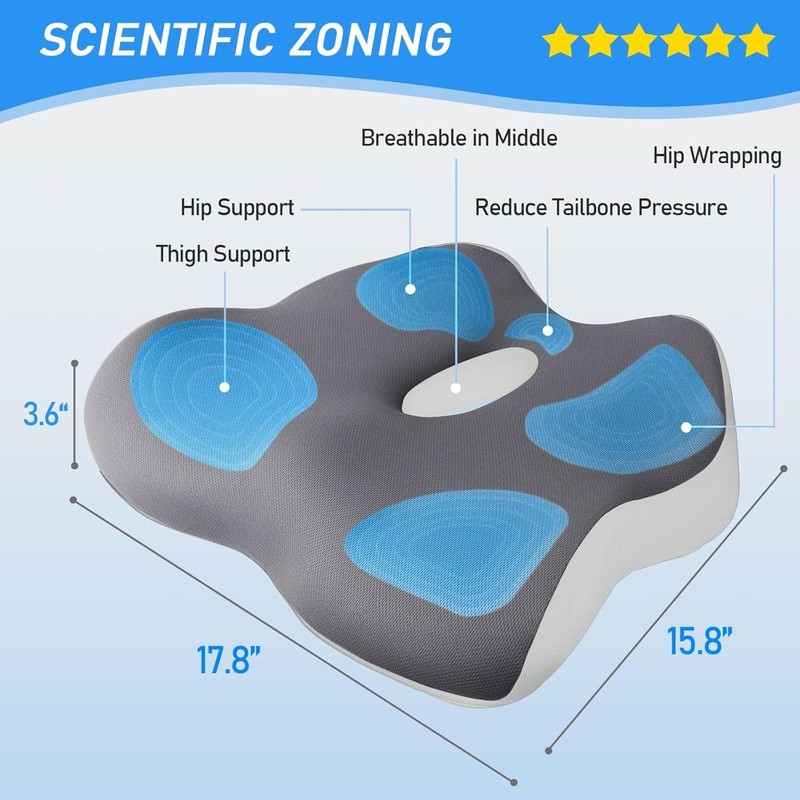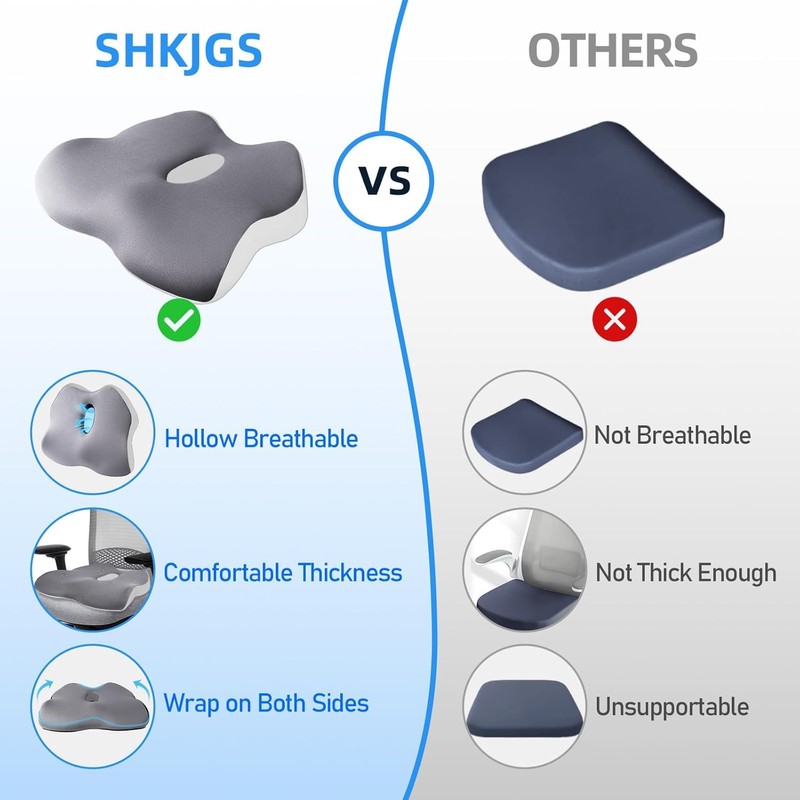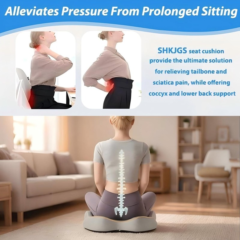 SHKJGS Memory Foam Office Chair Cushion-Sciatica Relieves Pain Ergonomic Cooling Gel Cushion for Pregnancy Coccyx Pillow for Long Sitting Office Workers, Car Drivers (1, White)