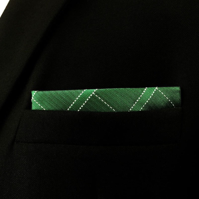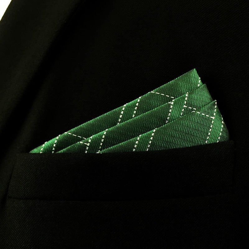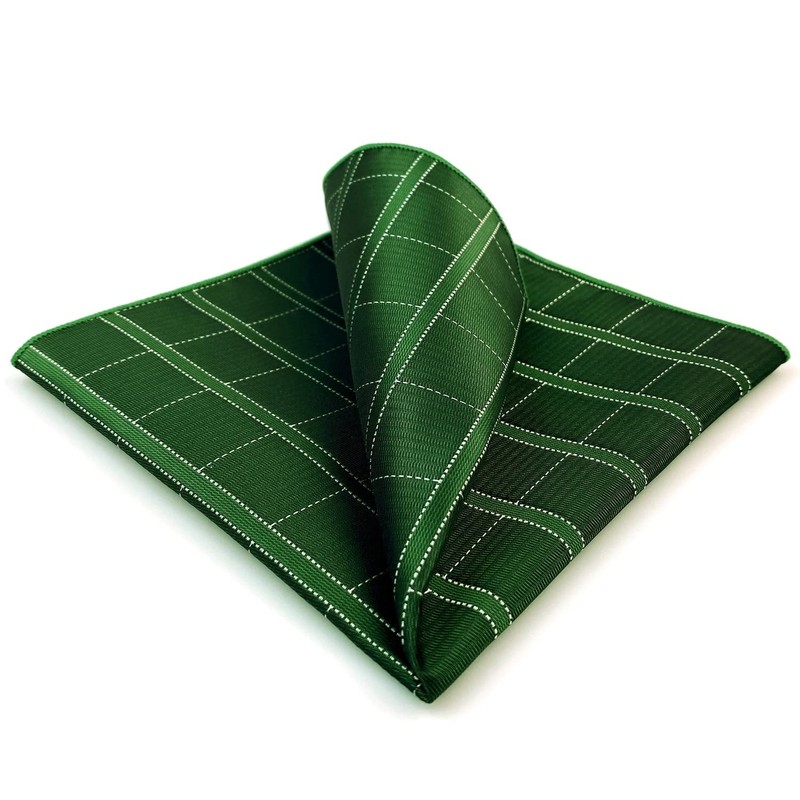 SHLAX&WING Green Check Men's Silk Pocket Square Extra Large 32cm, green