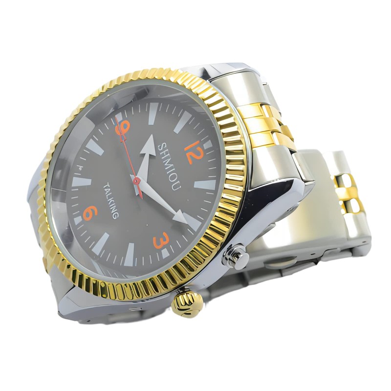 - Press SHMIOU talking watch on the button and the talking clock will show the time. Press separately to display day, date and year.