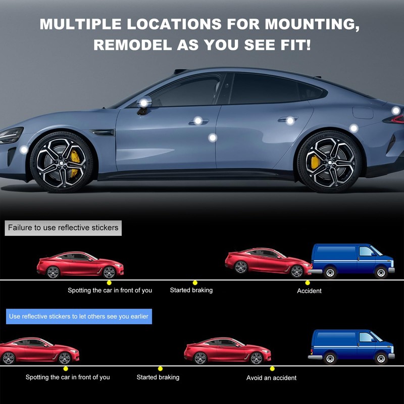 Package Includes: 4 Reflective Strips, 4 Paint Scratch Protector