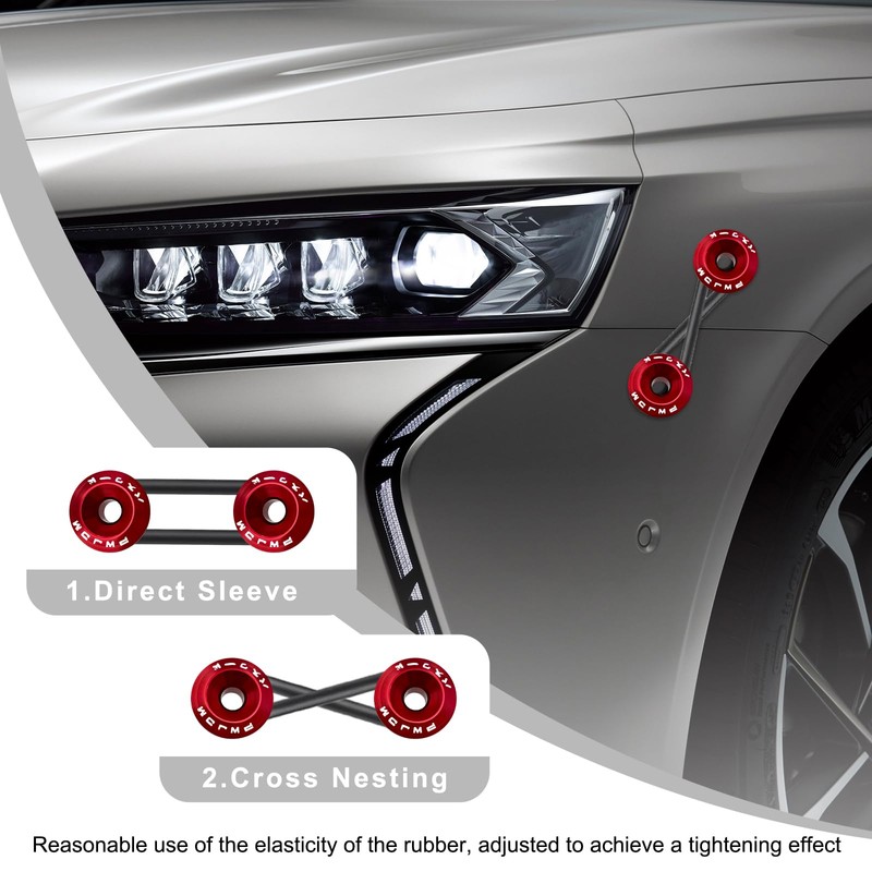 - Decorative Appearance: The aluminum fasteners in this kit are available in multiple vibrant colors, allowing you to customize your vehicle to match your personal style. They make the exterior of the vehicle more aesthetically pleasing and show off the owner's personality well.