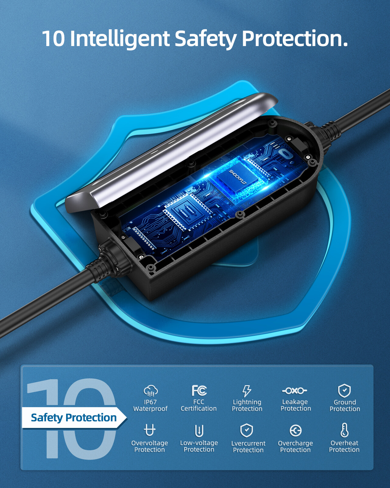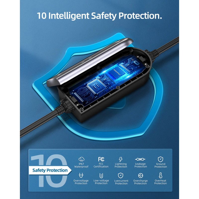 Certified Safe, for All EVs: Certified IP65 waterproof and internationally approved, with multiple protections against lightning, current leakage, grounding, low-voltage, over-voltage, over-charge, over-heat, and over-current.