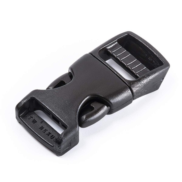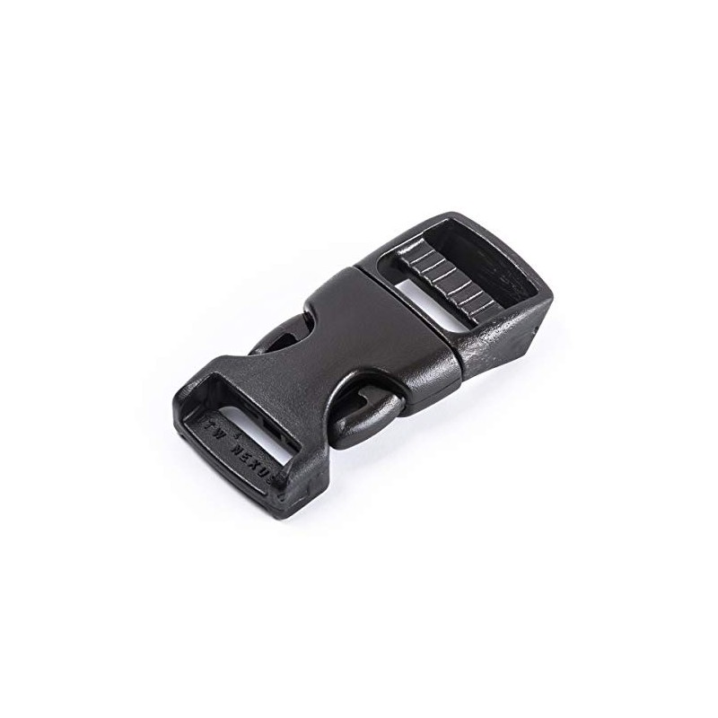 - Shock-absorbing, curved buckle for helmet fasteners on bicycle helmets/ski helmets or dog collars. Due to the size and curved shape, it is also perfect for paracord applications. Suitable for 15 mm wide webbing.