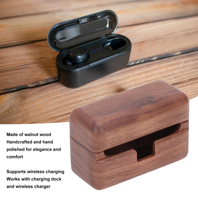 - Wooden Material: The earbud case is made of walnut wood, providing a luxurious and unique appearance. Handcrafted by skilled artisans, each case may have slight variations in color, showcasing attention to detail.